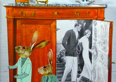 SCÈNES D’INTÉRIEURS Collage sur papier petit format 15x14cm. Exposition boutique Maëstrom. Série épuisée